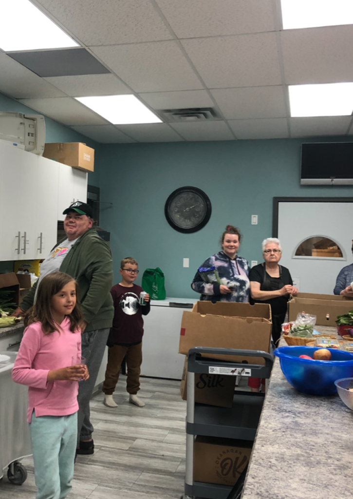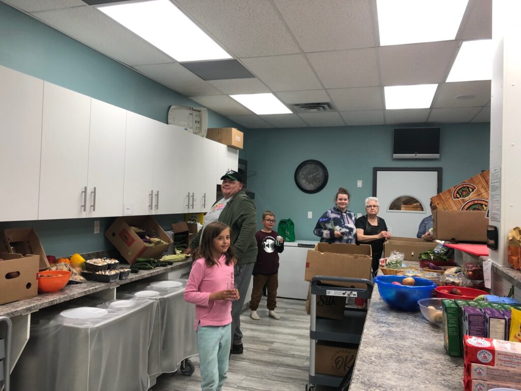 “We invite people to come in, register and shop as a family or single and take advantage of what has been provided. There is always a vast array of groceries. Our volunteers are there to help the with childcare, carrying groceries or just to be a friendly face. On Tuesday the Food Bank picks up groceries which helps greatly to build up their supplies to serve our community as well”.